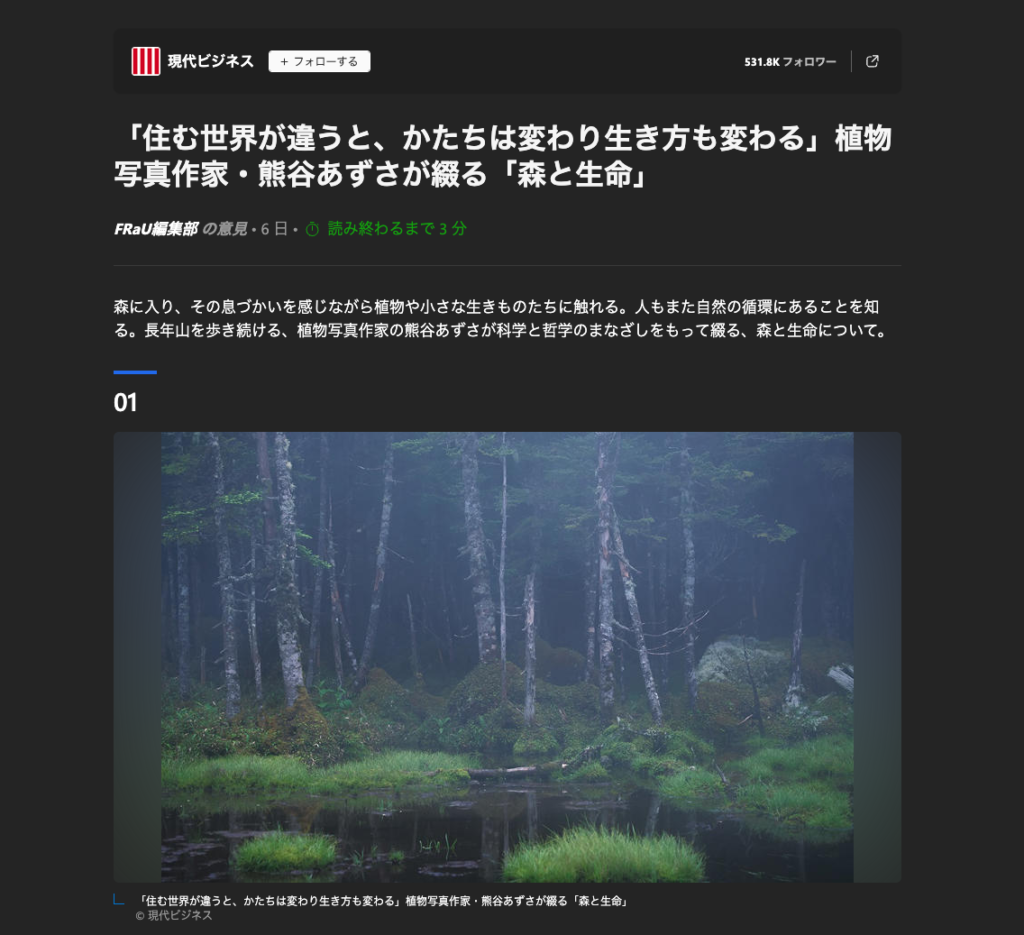 コラム『森をめぐる』が現代ビジネスに掲載されました